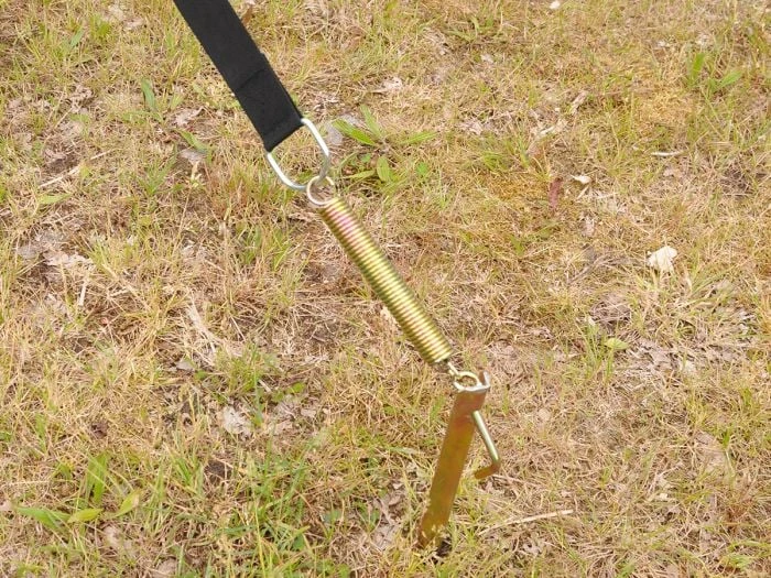 La sangle anti-tempête se fixe facilement grâce aux boucles, les sardines et les ressorts fournis. Les sardines sont d’une qualité robuste et lourde afin que vous puissiez ancrer correctement votre auvent. Les sangles sont également dotées d’une option d’arrimage permettant de retendre la sangle après l’avoir attachée.