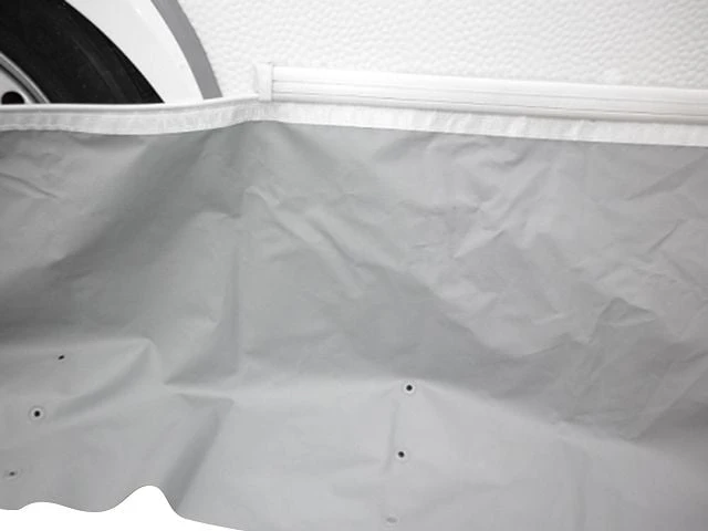 Parce que cette jupe de protection est extra longue, elle s’adapte à toutes les caravanes Fendt, quelle que soit sa longueur. Si la bande de brouillon est trop longue, vous pouvez facilement la couper à la longueur souhaitée avec des ciseaux bien aiguisés. La bavette de roue fournie est préformée au passage de roue et convient à toutes les caravanes Fendt à un seul essieu. La bande de tirage et le rabat de roue peuvent être facilement fixés l’un à l’autre grâce à la bande de couplage fournie.