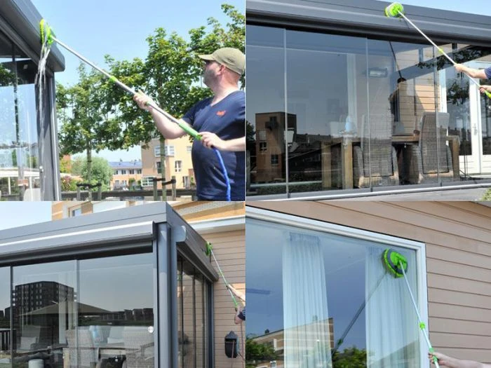 La caravane revient du garage et elle est complètement couverte de poussière et d’autres saletés. Avec cette brosse de lavage Obelink, vous pouvez facilement nettoyer votre caravane. La brosse à laver convient également pour les voitures, les fourgonnettes, les camping-cars et les vélos !
