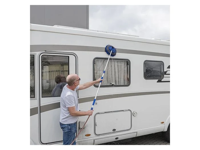 La caravane revient du stockage et elle est complètement recouverte de poussière et autres saletés. Avec cette brosse de lavage Obelink vous pourrez facilement nettoyer votre caravane. La brosse de lavage convient également aux voitures, camionnettes, camping-cars et vélos !