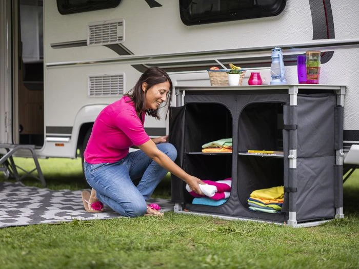 Vous préférez passer votre temps en vacances à faire des activités plutôt que de monter vos meubles de camping ? Choisissez alors l’Obelink Alu Quick, cette armoire de camping est équipée d’un système unique. Pas de barres que vous devez assembler vous-même, mais un tout qui peut être déplié en un rien de temps. Le pliage et le dépliage ne demandent que peu de temps et d’efforts !
