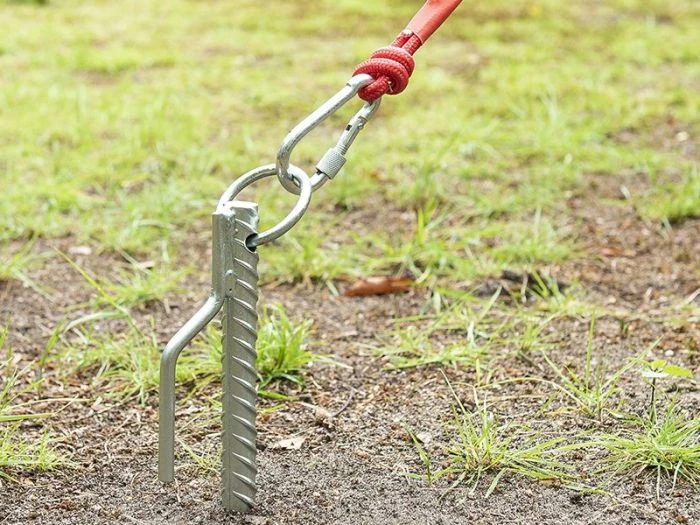 Ce polyvalent robuste est équipé d’un crochet et d’un anneau pour fixer les haubans, les sangles de tempête et les élastiques de tente. L’anneau permet également d’utiliser ce piquet à d’autres fins, comme attacher un canoë ou un chien.