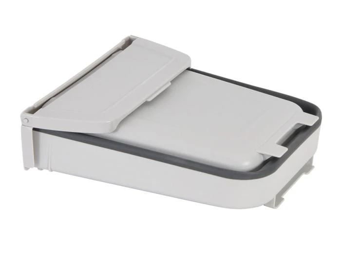 La poubelle est fabriquée en polypropylène avec TPR et a une capacité de 8 litres. La taille de la poubelle dépliée est de 29,5 x 27,8 x 19,7 cm et lorsqu’elle est pliée, la poubelle mesure 29,5 x 27,8 x 10 cm.