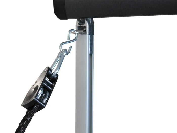 Les sangles anti-tempête ou les cordes de haubanage ne sont pas incluses avec les crochets de fixation Obelink pour mâts de solette.