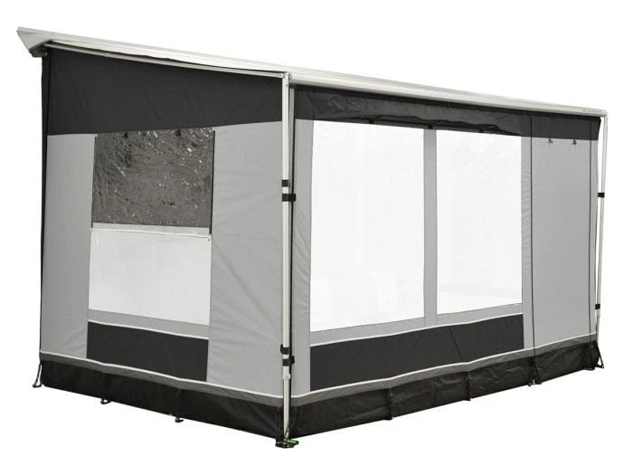 Pour assurer une adéquation parfaite des parois latérales Emperor avec la paroi de votre camping-car ou caravane, elles sont dotées de coussins en mousse. Ces coussins permettent de presser fermement la paroi latérale contre la paroi du camping-car ou de la caravane à l’aide d’une barre de pression (vendue séparément).