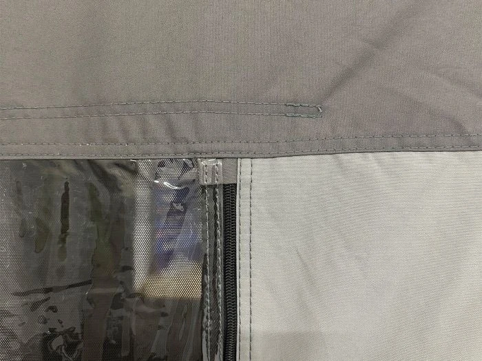 Les parois latérales de l’Obelink Emperor sont équipées d’une demi-fenêtre et d’un demi-matériau en maille pour une ventilation optimale. Le matériau en maille peut être couvert avec un rabat. La paroi avant de l’Obelink Emperor dispose également d’un point de ventilation qui peut aussi être fermé.