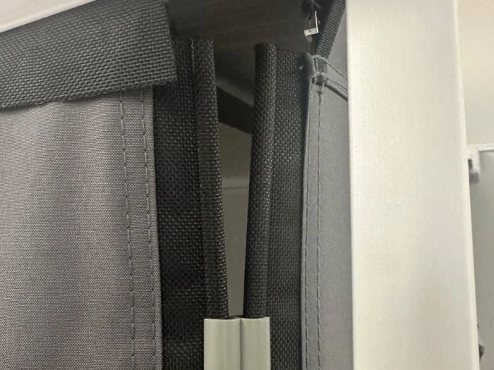 Les côtés de la paroi avant disposent d’attaches en Velcro pour la fixer aux montants de l’auvent. Combinée aux parois latérales Emperor, elle permet de transformer l’auvent en une tente complète.