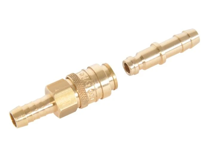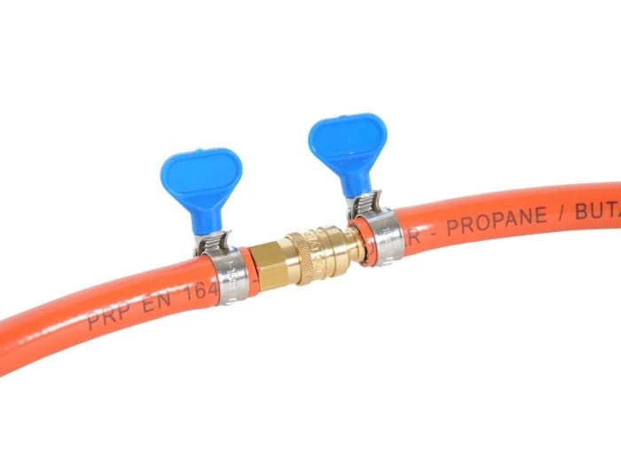 L’adaptateur se compose de deux parties : une partie comporte un pilier de tuyau et un raccord rapide mâle, l’autre partie comporte Ă©galement un pilier de tuyau et un raccord rapide femelle. Vous fixez les deux tuyaux aux piliers de tuyau Ă l’aide de colliers de serrage. Le raccord rapide permet de dĂ©connecter ou de connecter les tuyaux en un seul mouvement, ce qui est idĂ©al pour changer d’appareils de cuisson ou de barbecue au camping par exemple.