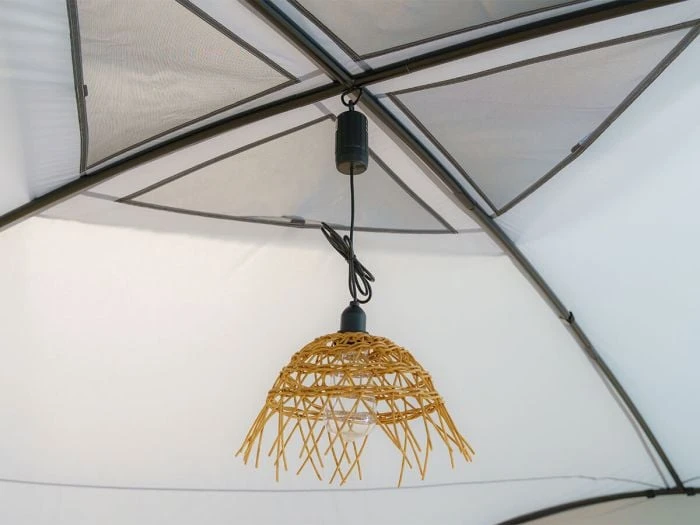 Grâce à son armature en acier solide, elle offre une grande stabilité. Avec une hauteur de 240 cm, il y a suffisamment d’espace pour se tenir debout sous cette tonnelle camping.