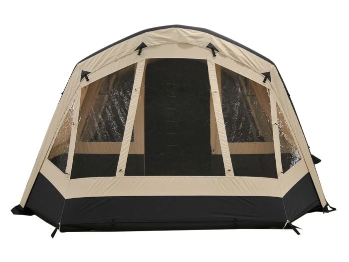 Cet ensemble 2 pièces comprend une façade avec uniquement des fenêtres et une façade avec uniquement du moustiquaire. Vous pouvez donc choisir la paroi que vous souhaitez utiliser. Les parois peuvent être facilement attachées à la fermeture éclair de la tente. Par beau temps et à des températures chaudes, optez pour la paroi avec moustiquaire pour profiter pleinement de la vie en extérieur. Par temps moins clément, vous pouvez utiliser la paroi avec fenêtres pour intégrer l’espace de l’auvent à la tente. Les deux parois peuvent être légèrement enroulées pour créer une entrée pratique pour accéder à la tente.