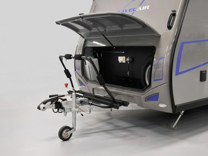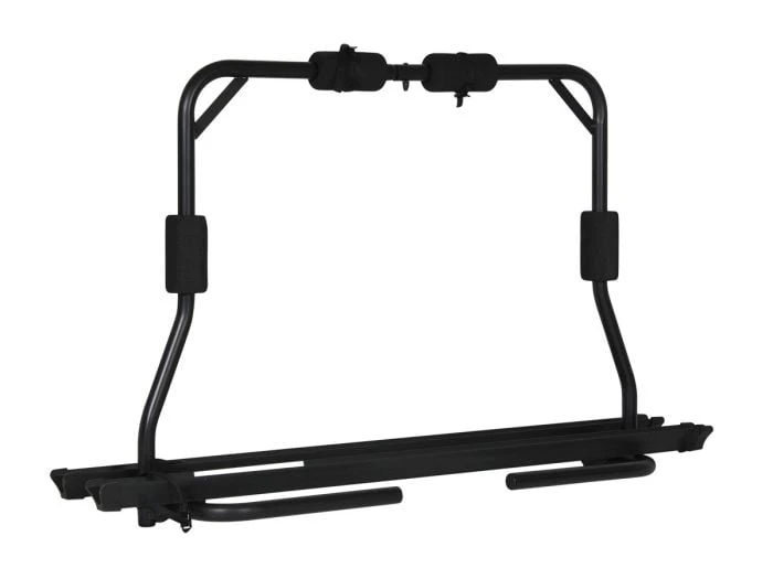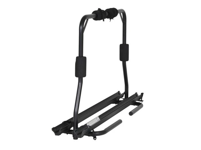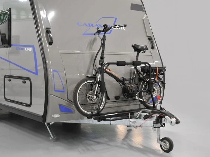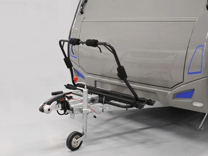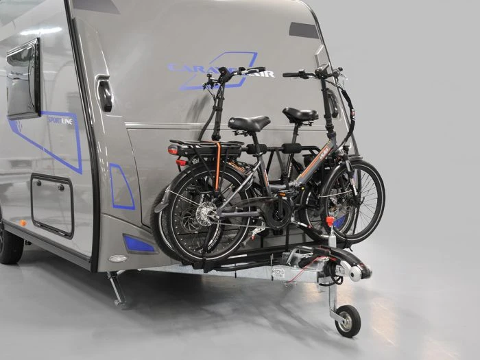 Le module central est rabattable vers l’avant, ce qui vous permet d’ouvrir facilement le coffre avant de la caravane sans devoir retirer le porte-vélos. L’installation est rapide et sans perçage, idéale pour une mise en place sans effort.