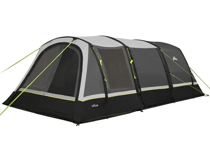 L’Hudson 4 Poly Easy Air CoolDark, comme son nom l’indique, est une tente qui peut être installée facilement grâce aux tubes d’air intégrés. Au lieu des poteaux de tente traditionnels, l’Hudson est entièrement monté avec des tubes d’air gonflables. Les quatre tubes d’air peuvent être gonflés très rapidement de manière indépendante avec la pompe à main fournie. Sur le côté extérieur, il y a des rabats pratiques derrière lesquels se trouvent les valves. Vous n’avez donc pas besoin de vous glisser sous la toile de tente pour monter la tente. Les tubes d’air offrent non seulement une facilité de montage, mais ils sont également très solides et résistants aux chocs. Là où les poteaux de tente traditionnels peuvent se plier ou même se casser sous de fortes rafales de vent, les tubes d’air se balancent simplement avant de revenir à leur forme originale. Vous pouvez donc camper en toute tranquillité, même par mauvais temps. Pour une stabilité supplémentaire, un tube d’air gonflable supplémentaire est fourni pour être placé dans le toit afin de le tendre davantage.