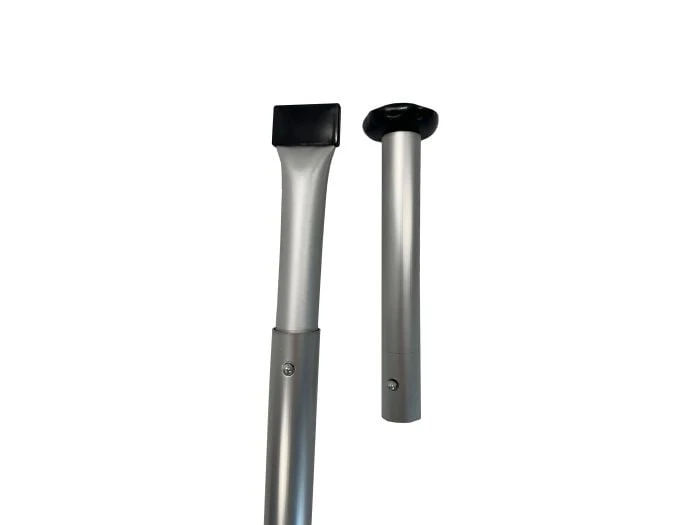 La barre de pression Obelink Luxe est télescopique et se compose de deux parties afin que vous puissiez les glisser ensemble, les démonter et les emporter avec vous de manière compacte. La hauteur de la barre de pression peut également être facilement ajustée en tournant la barre d’un quart de tour et en la faisant glisser vers l’intérieur ou l’extérieur. Vous pouvez étendre la barre de poussée jusqu’à une longueur maximale de 300 cm.