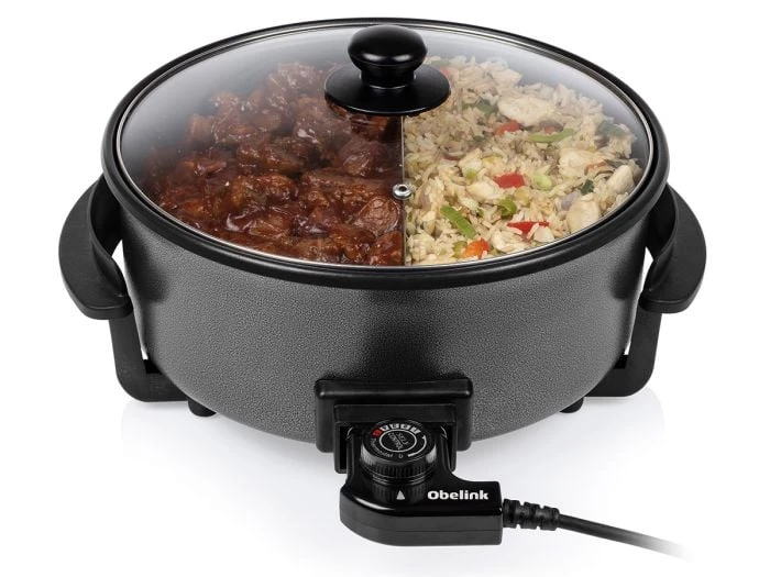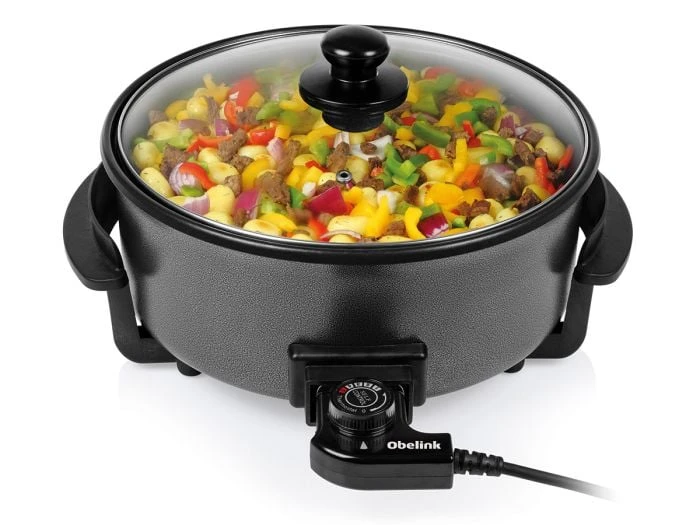 La poêle Obelink PD-3818 est équipée de poignées Cool Touch, de pieds antidérapants et d’un cordon amovible avec thermostat, ce qui la rend très pratique à utiliser. Le revêtement antiadhésif empêche les aliments de coller et facilite le nettoyage.