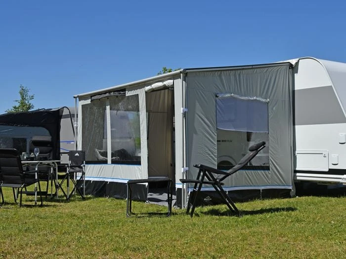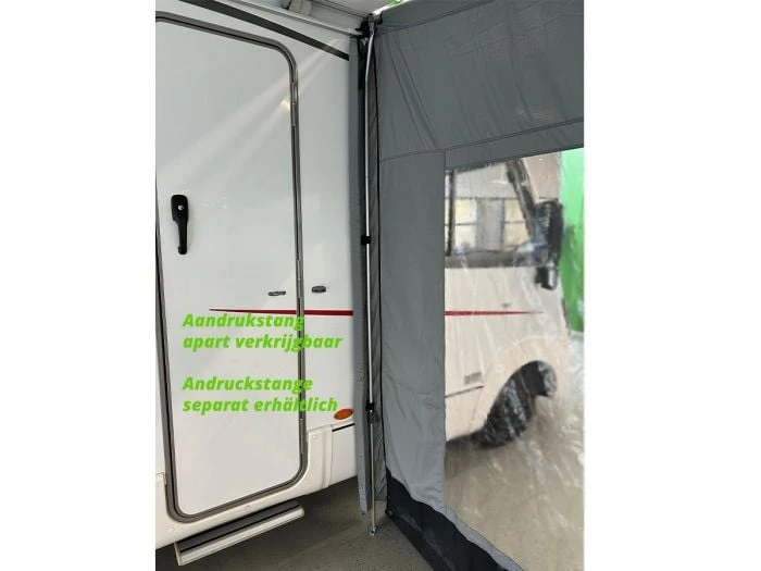 Pour assurer une adéquation parfaite des parois latérales Queen avec la paroi de votre camping-car ou caravane, elles sont dotées de coussins en mousse. Ces coussins permettent de presser fermement la paroi latérale contre la paroi du camping-car ou de la caravane à l’aide d’une barre de pression (vendue séparément).