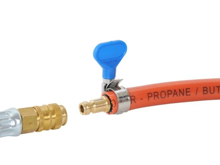 L’adaptateur est équipé d’un côté d’un raccord cannelé que vous pouvez facilement fixer à votre tuyau de gaz à l’aide de colliers de serrage. De l’autre côté se trouve un raccord rapide mâle, vous pouvez donc connecter rapidement le tuyau à un raccord rapide femelle sans outils. Cela rend le débranchement et le raccordement de votre tuyau de gaz particulièrement simple et rapide.