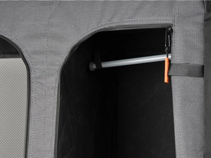 Si vous hésitez à acheter une penderie ou une armoire avec des étagères, l’Obelink Store est le meuble de camping parfait. Le côté droit de l’armoire est pourvu de 4 étagères, mais si vous préférez utiliser une penderie, vous pouvez retirer les étagères et utiliser la tringle à vêtements. L’arrière est équipé de mesh afin de bien ventiler l’armoire. Les deux côtés sont équipés de poches de rangement, idéales pour ranger, par exemple, un magazine, un déodorant ou de la crème solaire.