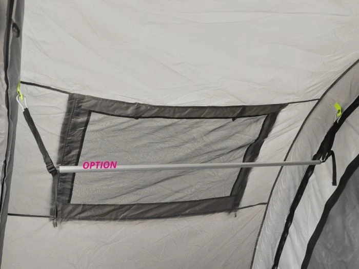 Une autre caractéristique très pratique est que la Summer 4 XL est dotée de compartiments de rangement et d’un point de suspension pour une lampe. La ventilation a aussi été pensée. A l’avant comme à l’arrière il y des ouvertures de ventilation couvertes qui peuvent rester ouvertes tout le temps. Cela crée une bonne circulation d’air et un environnement de vie agréable. L’entrée spacieuse à l’avant et l’entrée latérale sont équipées d’une porte moustiquaire, ce qui vous permet de bien aérer sans être embêté par des insectes qui entrent. Grâce au tapis de sol cuvette intégré avec seuil rabattable derrière les portes, les insectes et l’eau de pluie restent à l’extérieur de la tente. Le tapis de sol à l’entrée principale est pourvu d’un seuil rabattable, afin de ne pas trébucher.