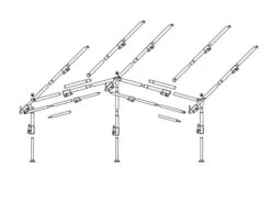 Les montants sont Ă©quipĂ©s de pieds rabattables articulĂ©s pouvant ĂŞtre fixĂ©s au sol Ă l’aide de piquets.