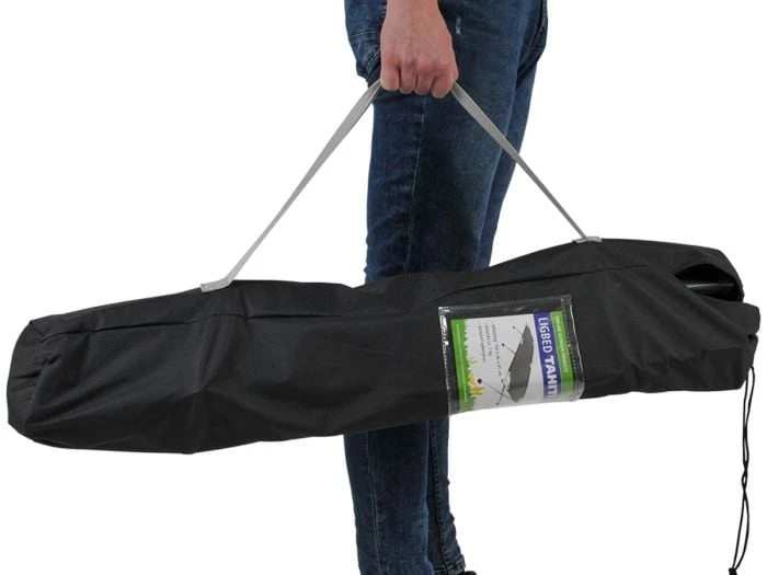 Ce lit de camp mesure 195 x 75 cm et a une hauteur d’environ 40 cm. De cette façon, vous avez toujours de l’espace sous le lit pour ranger des affaires. Le lit de camp peut être plié de manière très compacte et est facile à transporter avec le sac de transport fourni.